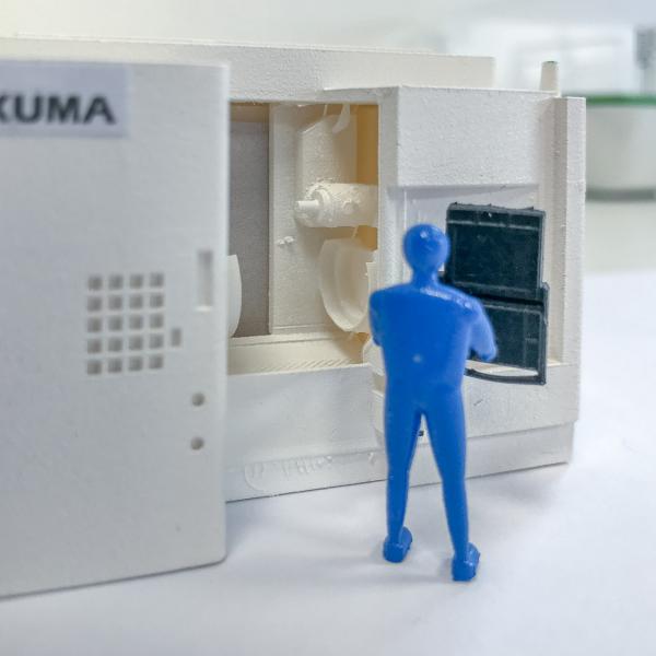 Nous adaptons à une échelle réduite vos fichiers CAO des éléments à imprimer. Les éléments ainsi réduits sont alors imprimés en résine ou en ABS. Ils sont ajustés, assemblés et collés.
